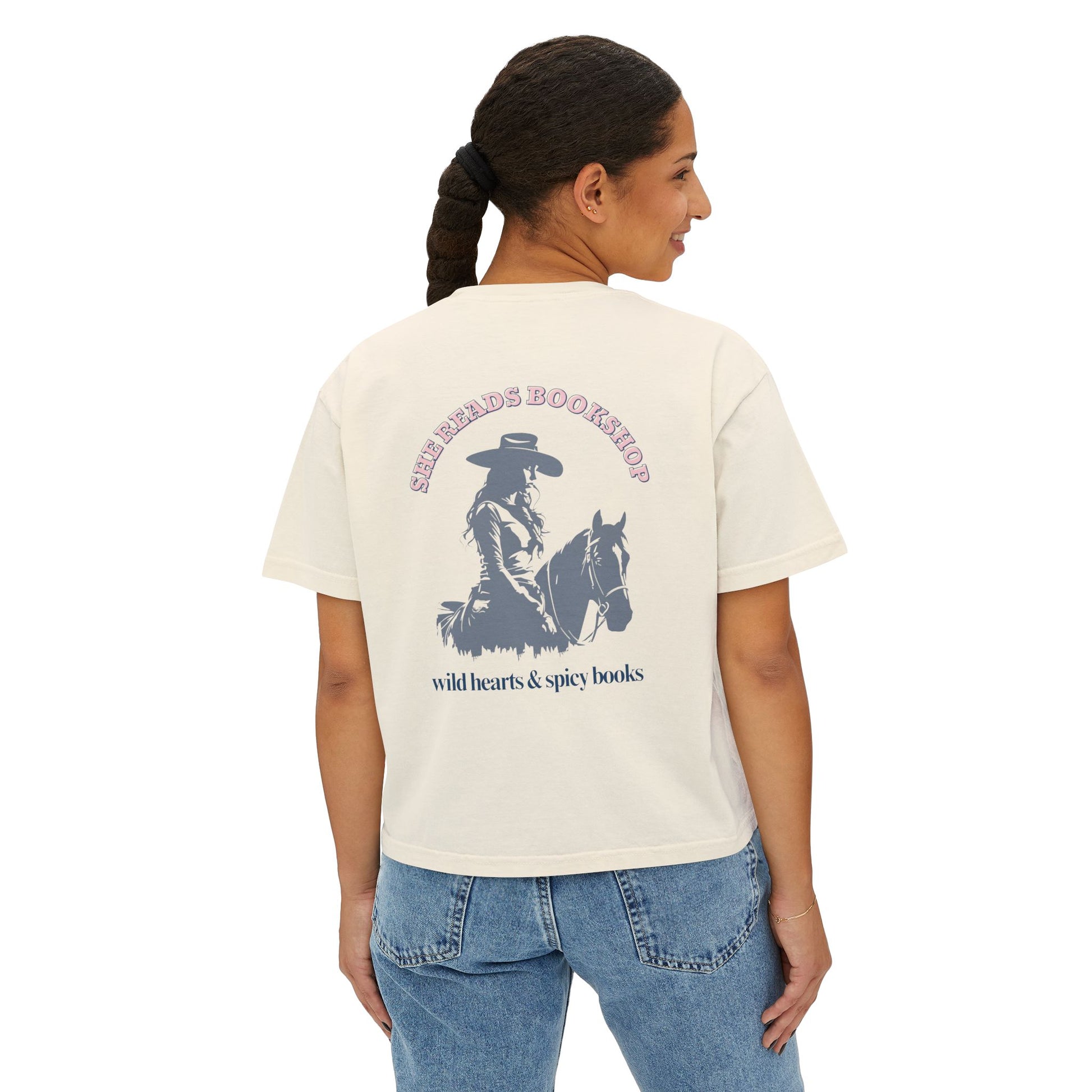 Soft, effortlessly cool, and made for book babes who know comfort and confidence can coexist. This Women’s Boxy Tee brings that lived-in, library-day energy with a relaxed fit and slightly cropped cut — perfect for curling up with a good romance, grabbing coffee with your book club besties, or wandering your favorite indie bookstore.